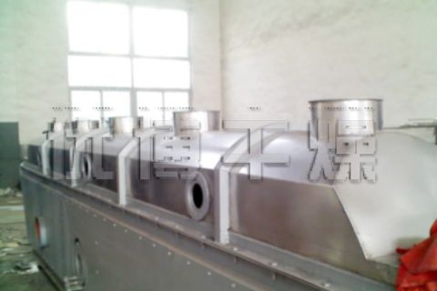 香料干燥機是由物料自進料進口進入機內(nèi),在振動力作用下,物料沿水平面流化床拋擲,向前連續(xù)運動,熱風(fēng)向上穿過流化床同濕物料換熱后,濕空氣經(jīng)旋風(fēng)分離器除塵后由排風(fēng)1:3排出.干...